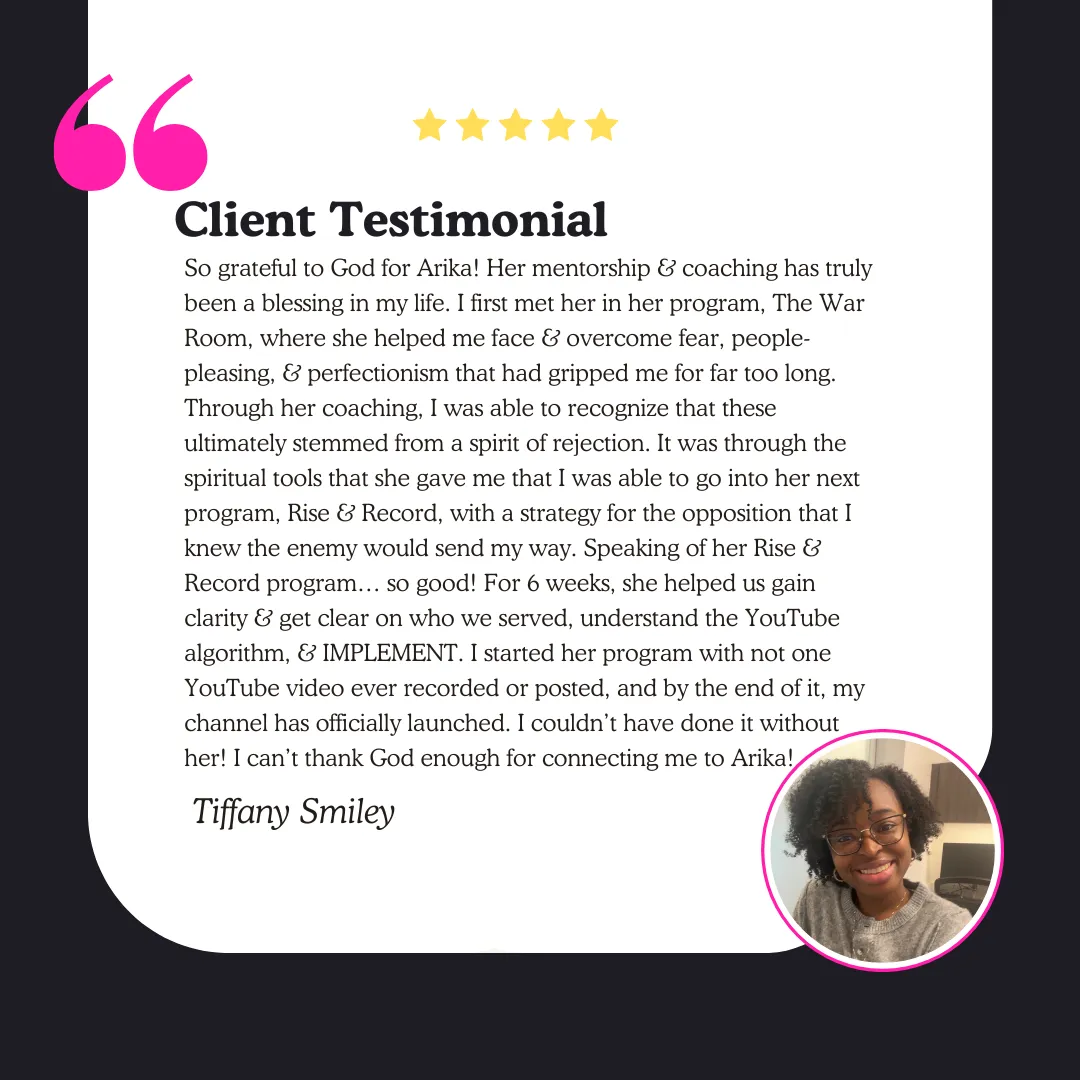 Hey Sis! I'm Arika Davenport- The Freedom Coach for Christian coaches. I help women get free from the spiritual and emotional roots secretly sabotaging their confidence,visibility and coaching business-so they can successfully do what God has called them to do.
